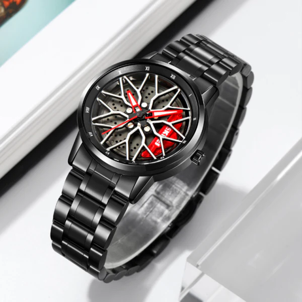 Make a bold statement with this Stainless Steel Wheel Dial Quartz Watch for Men. Featuring a unique wheel-inspired design, this waterproof timepiece combines edgy aesthetics with everyday functionality. Crafted with durable stainless steel and powered by a precise quartz movement, this fashion-forward watch is perfect for men who appreciate standout style and reliability. Whether you’re dressing up or down, it’s the ideal accessory to elevate any outfit while keeping you punctual in style.